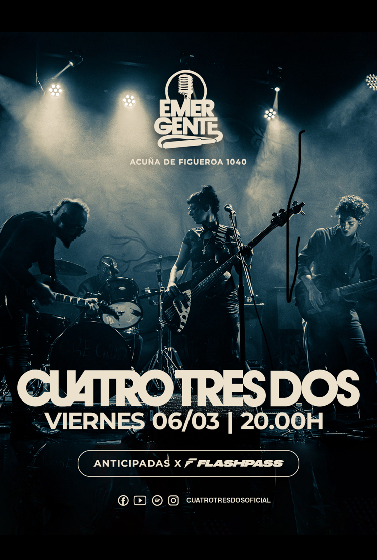 Cuatro Tres Dos es una banda argentina nacida en La Boca. Desde 2013, explora el cruce entre el post punk, el rock alternativo y una búsqueda espiritual afinada en 432 Hz.