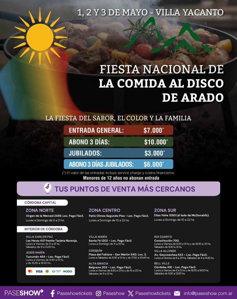 FIESTA NACIONAL DE LA COMIDA AL DISCO DE ARADO MAYO 2026