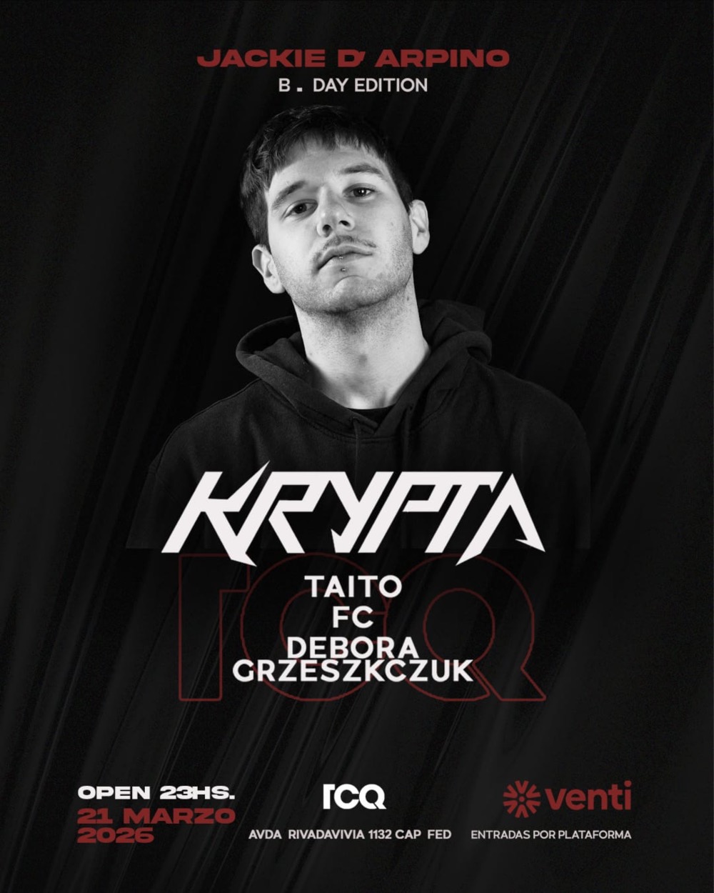 Evento en Venti: JACKIE D’ARPINO · BDAY NIGHT - Minimal techno