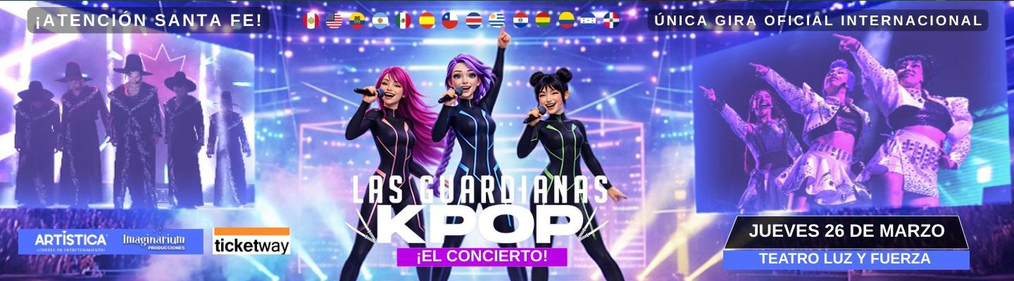 Pagan a partir de los 3 años ¡LAS GUARDIANAS KPOP llegan a tu ciudad, como parte de su exitoso Tour por Latinoamérica, luego de agotar varias funciones en el teatro Gran Rex, y en los mas importantes de la región. Una historia original inspirada en la fiebre mundial del momento junto a las canciones KPOP más escuchadas por millones en el mundo. Un ESPECTACULAR CONCIERTO que los hará vibrar y vivir una gran experiencia. Preparate para disfrutar de una mega producción internacional con 12 artistas en escena, impresionantes vestuarios e increíbles coreografías, todo presentado con pantallas Led, puesta de luces y efectos especiales. ¡Podrán conocer a todas las Guardianas y los Rivales KPOP en una Batalla Musical por demostrar quién es el mejor EN VIVO Y EN DIRECTO! ¡SHOW OFICIAL INTERNACIONAL! En el lugar habrá disponible merchandising exclusivo. ¡¡¡LOS ESPERAMOS!!!
