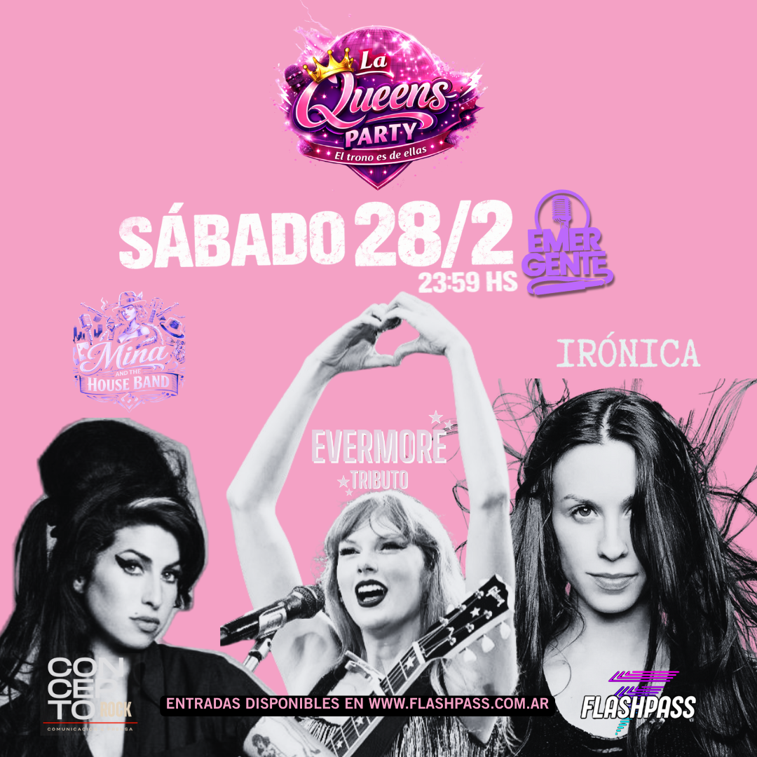 Una noche para homenajear a tres reinas del pop que marcaron épocas y siguen sonando fuerte.🎤 @minavelosook (Tributo a Amy Winehouse💘@evermore_tributo (Tributo a Taylor Swift)🔥 @ironica.ar (Tributo a Alanis Morissette)Una noche y tres estrellas brillando ⭐️Entrada gratuita con consumo mínimo obligatorio disponbile en Flashpass. No te lo pierdas!@elemergente#QueensParty #PopNight #Tributos #LiveMusic #reinasdelpopurbano