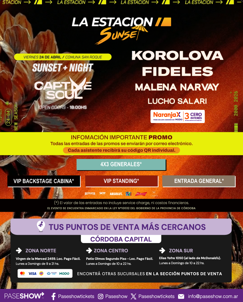 La Estación se encuentra en Córdoba. Ver ubicación en Google Maps. Te recomendamos llegar con anticipación al horario de las 10:00.